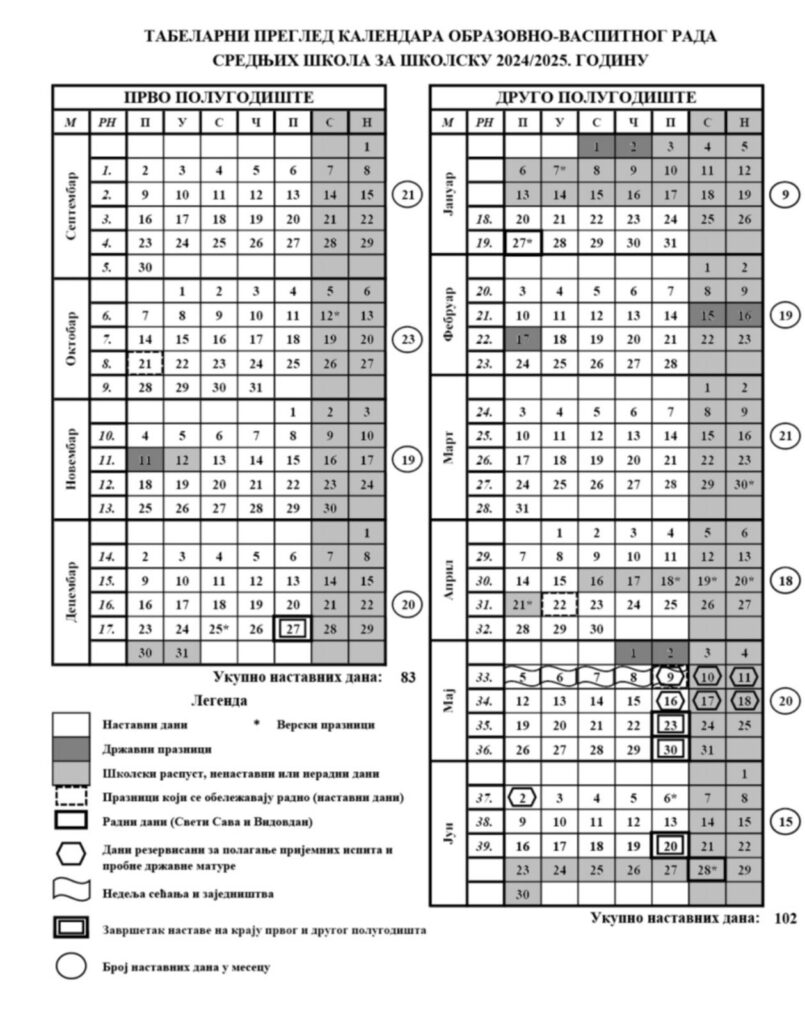 У среду, 13. новембра 2024. године, настава се у свим школама изводи према распореду часова за понедељак.